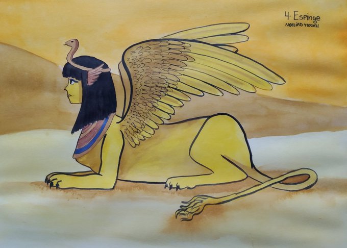 InkTober día 4 Esfinge #inktober #inktober2021 #inktoberday4 #mylist #myart #esfinge #tintachina #ink