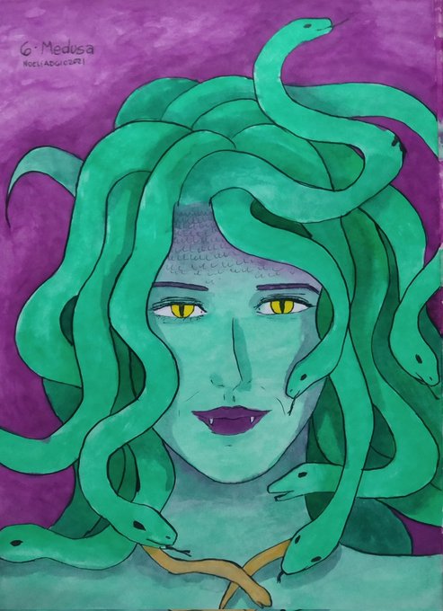 InkTober día 6 Medusa #inktober #inktober2021 #inktoberday6 #mylist #myart #tintachina #ink #medusa