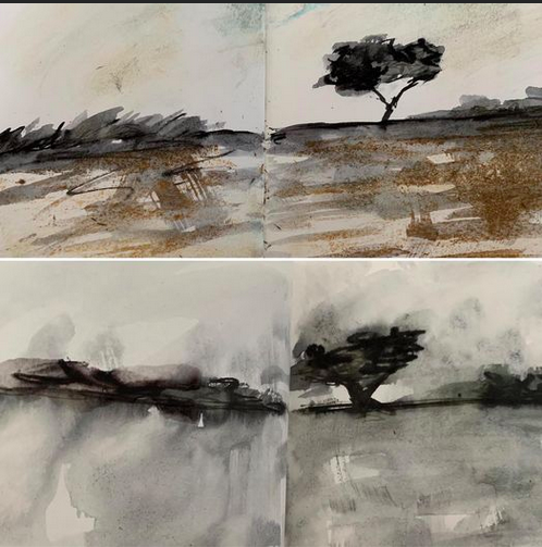 A wee tree, in the rain, on the #isleofskye #inktober #inkdrawing #pastel #sketching #dailysketch #sketchbook #mysketchbook #myart #anartistslife