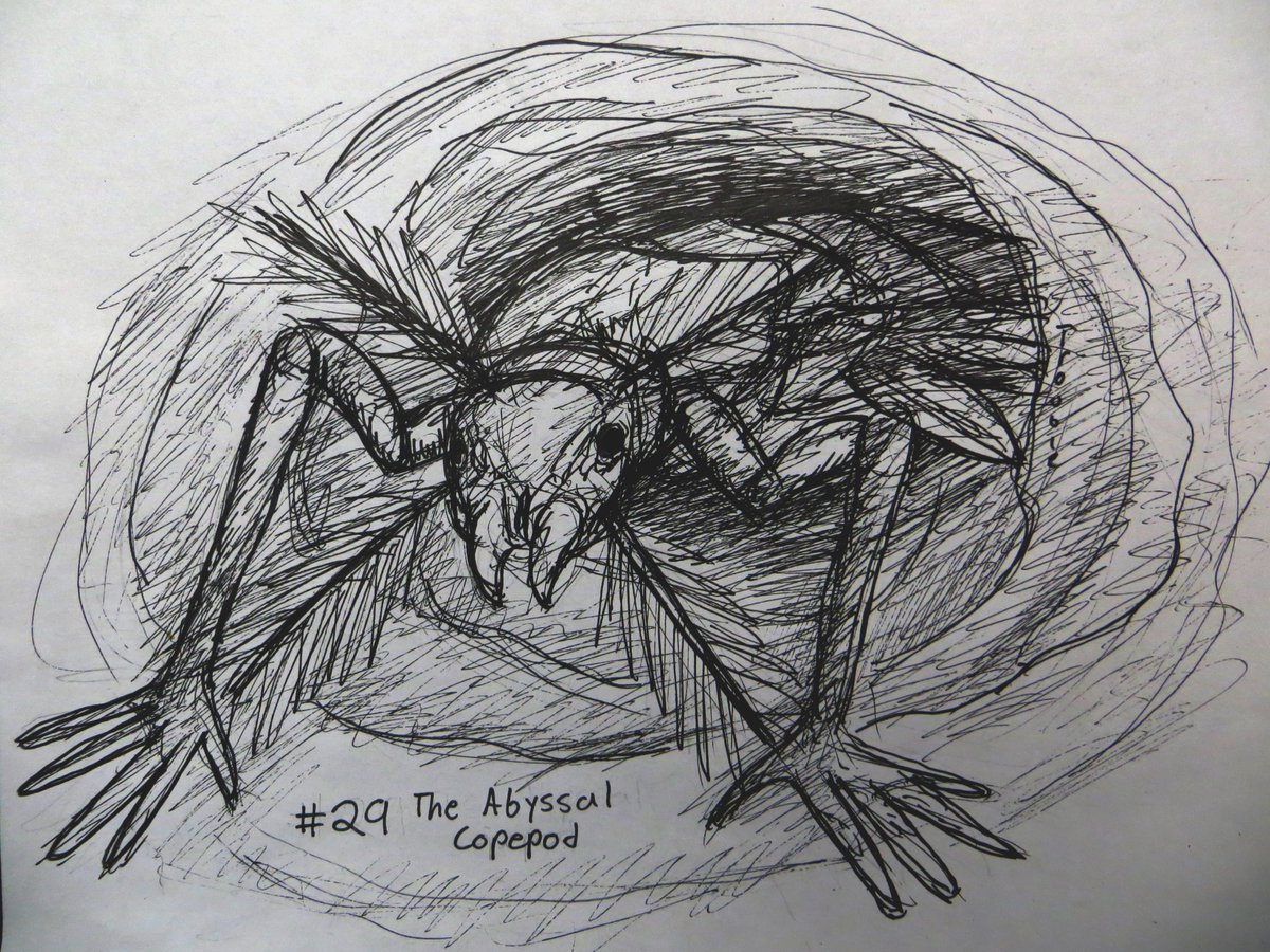 Inktober 2021 #29 - The Abyssal Copepod #Inktober #Inktober2021 #inktoberday29 #inktober2021day29 #mysteryfleshpit