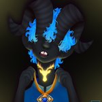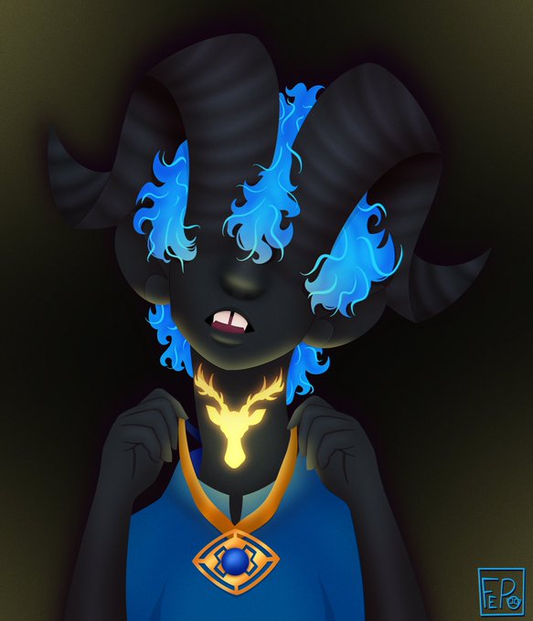 🇧🇷Dia 2: Chifres 🤘🏾 Decidi criar um personagem que não tivesse olhos, e que tivesse seus chifres começando na região que seria de seus olhos. Para auxiliar sua visão, ele carrega consigo um amuleto :) #mystictober_reku2021 #mystictober_reku #inktober2021 #inktober #horns