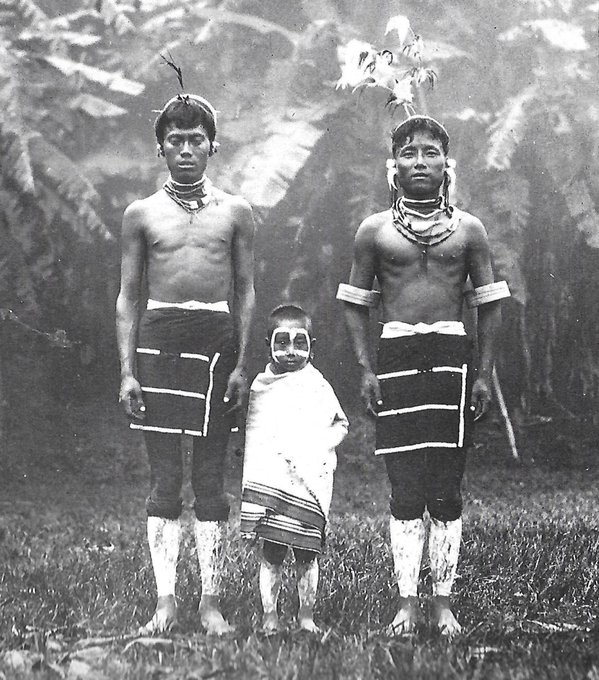 Two men and a boy with painted face wearing dance dress #Zemi, #Lakema village. (1918) #Nagaland #Nagas #NorthEastIndia #MondayMotivation