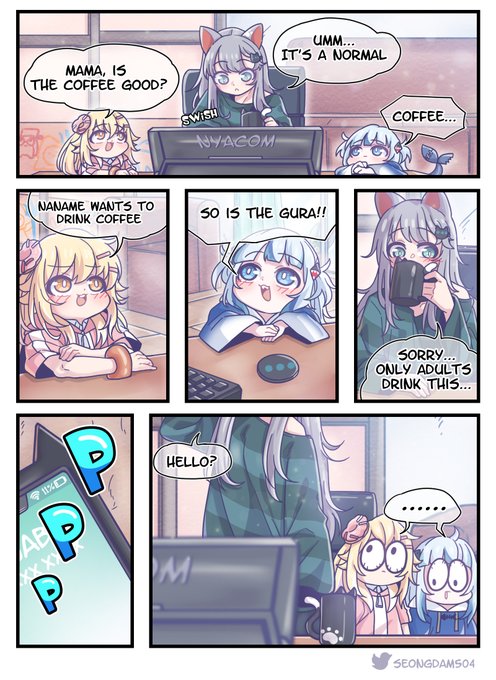 #Nyaacho #gawrt #nanameart #HololiveFr Des enfants qui veulent du café... twitter.com/seongdam504/…