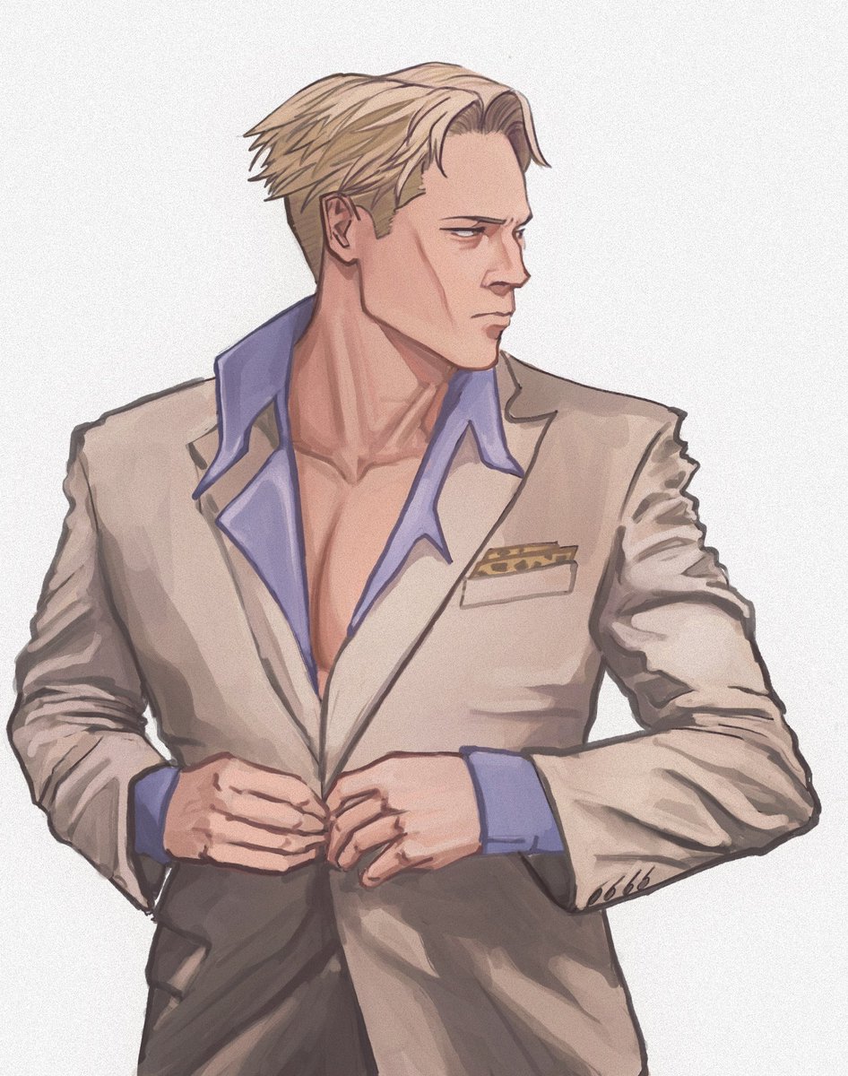 he looks pretty good in a suit 😳💙 #jjk #jujutsukaisen #pussinboots #pussinbootsthelastwish #nanamikento #bigbadwolf #kenjirotsuda #furry #art #fanart #digitalart #scribble