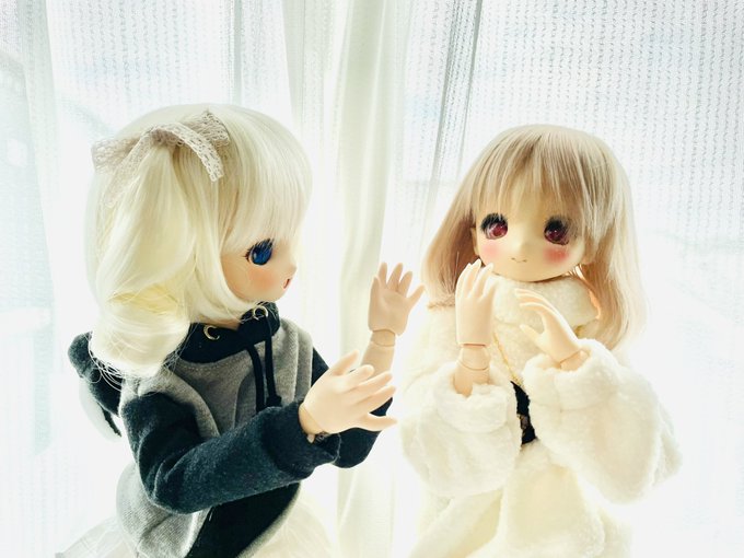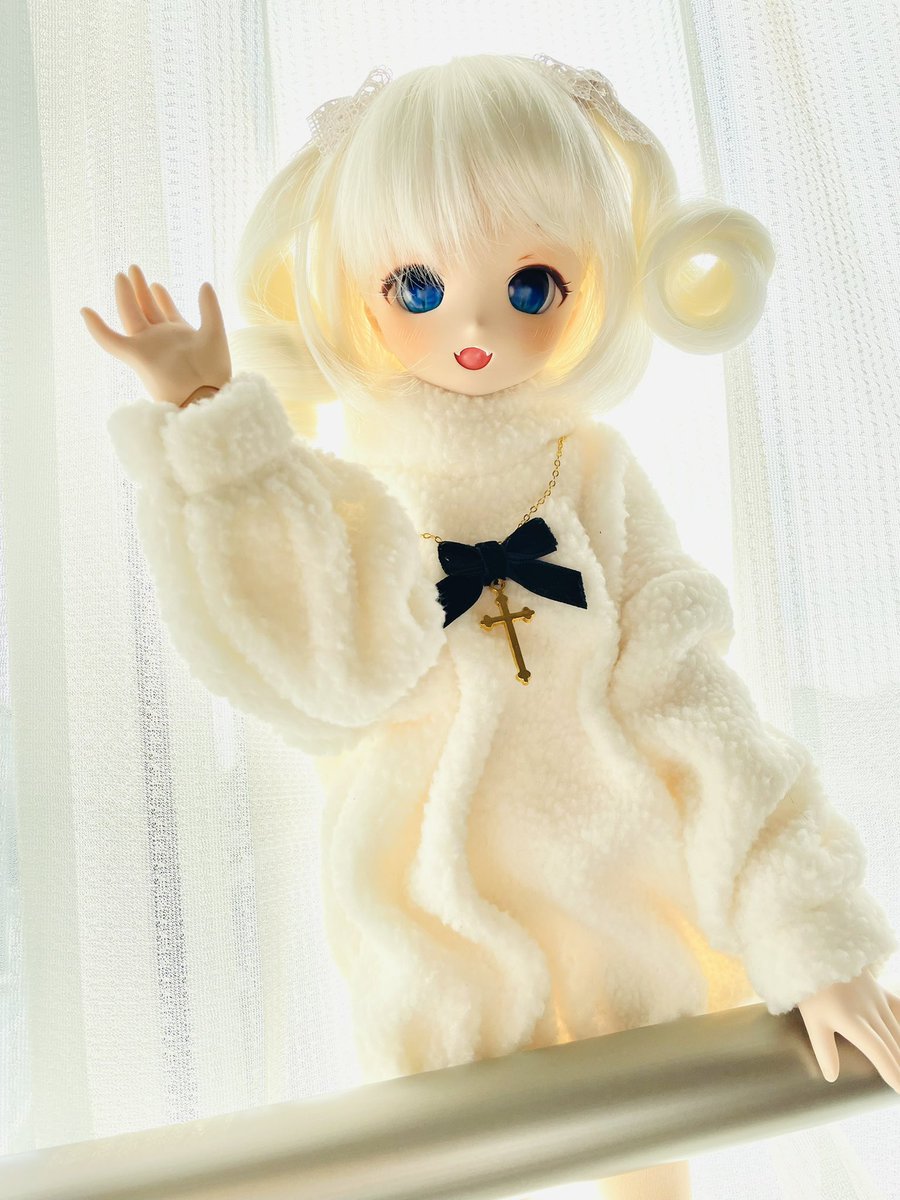 おはようございます。 朝日が気持ちいいですね。 昨日「ひつじさんみたい、かわいい」と言ってもらえて、朝になってもテンション高めななつめさん。 #おはドル #naoaitaka #ドールオーナーさんと繋がりたい