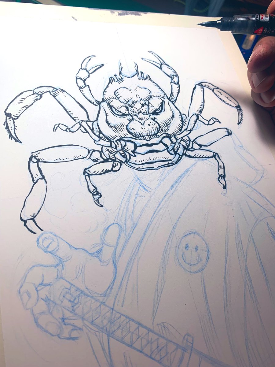 Inktober2022 Day10 : Crabby Heikegani 🦀 #inktober #inktober2022 #inktober2022crabby #trip #brushpen #kuretake #pentelbrushpen #art #illustrationartists #naonejetta #gpen #myinktoberstory #art #inkwork #blackandwhite #sketch #inkillustration #inking #artist #creative