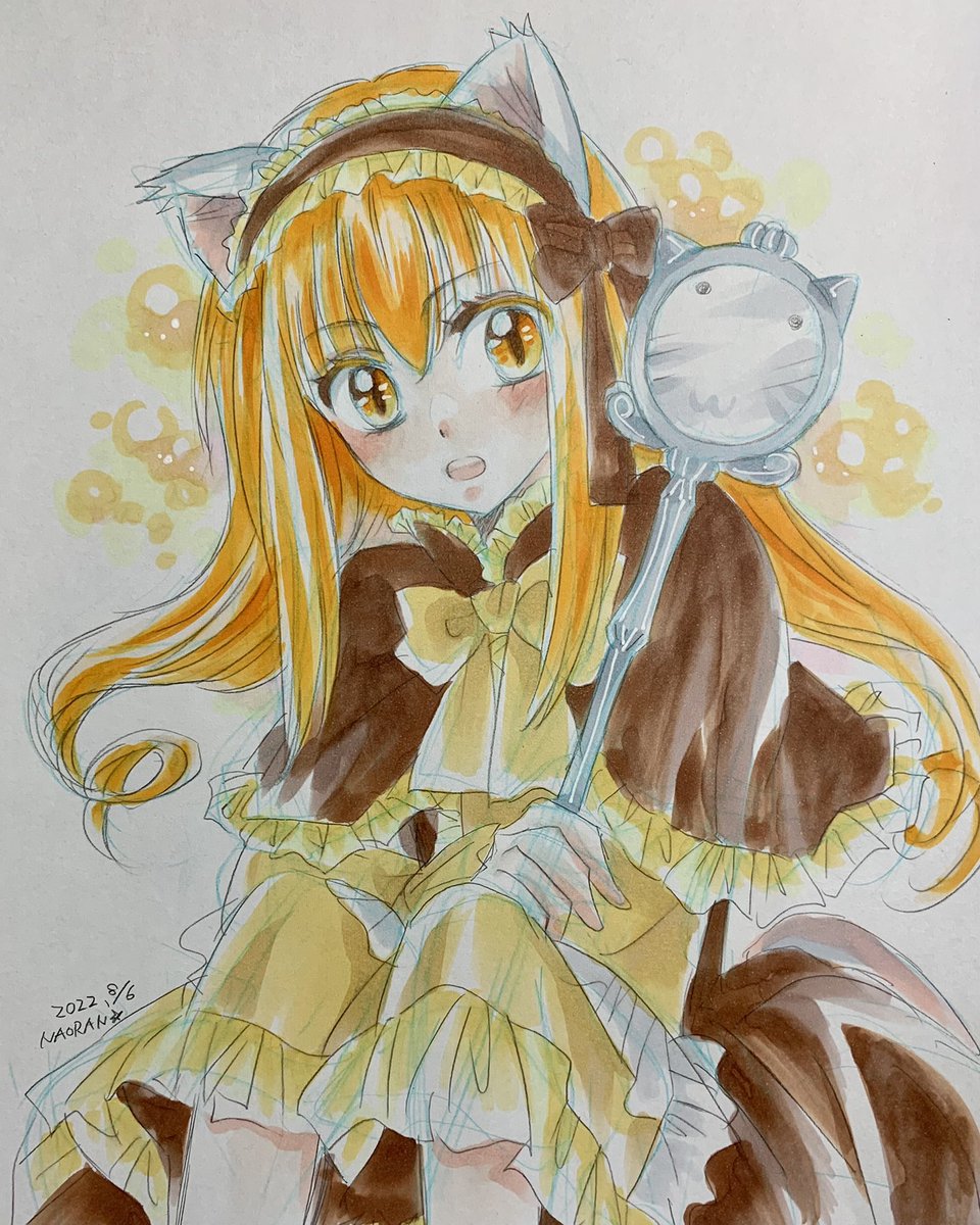 #naoranとあかねのアクキー計画 #コピック アクキーのキャラです 金と銀のペン買ったまま放置しててやっと使えたけど、、塗りながら手に付いて汚れてゆく、、しかもこのペンコピックで溶けるのか😵💫😵💫