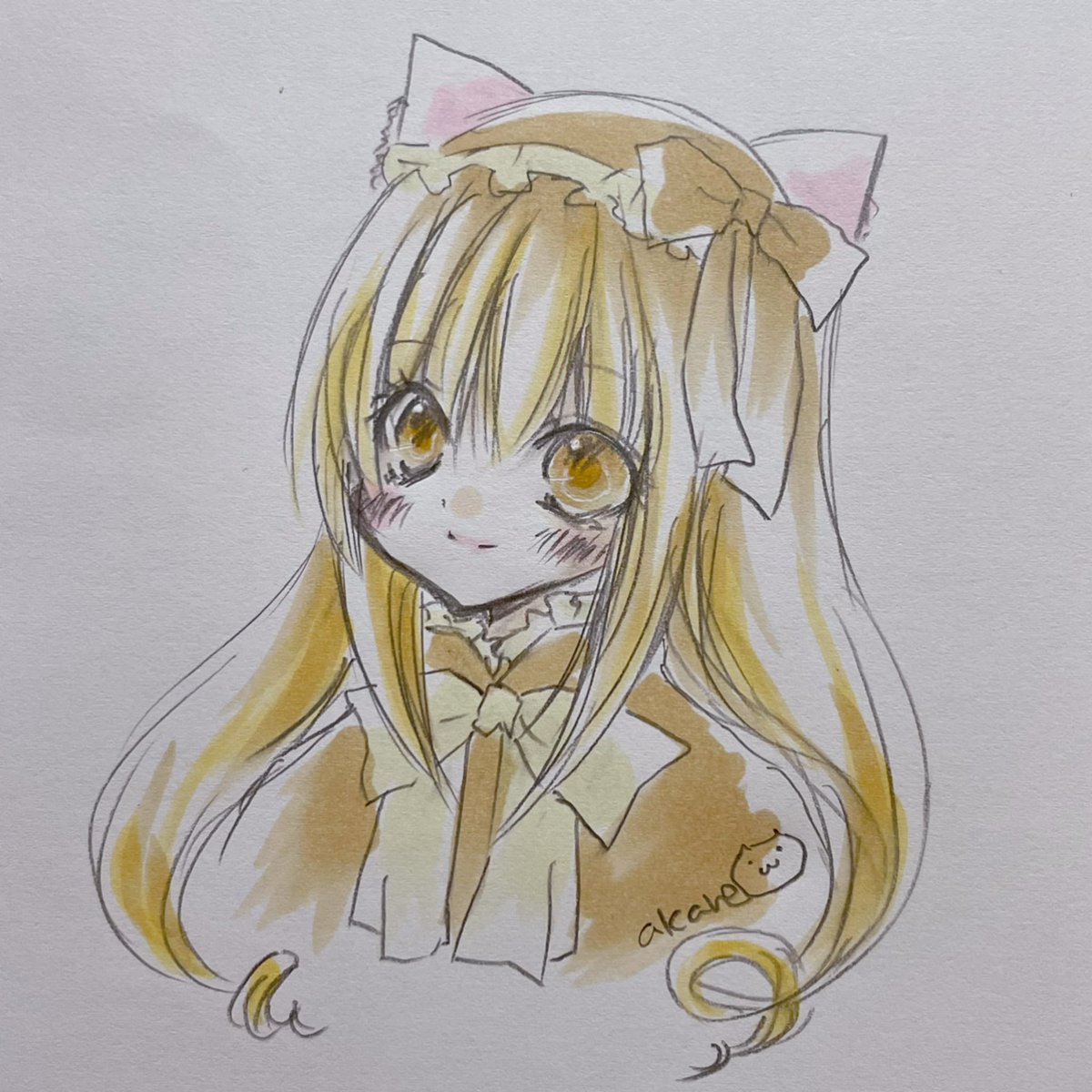 #naoranとあかねのアクキー計画 #コピック 豆色紙です 青もう少し濃い方がよいかも? 男子キャラは漫画描くスタンダード頭身だけど女子キャラはいつもの大きめ目と漫画キャラの中間くらいの頭身🧐