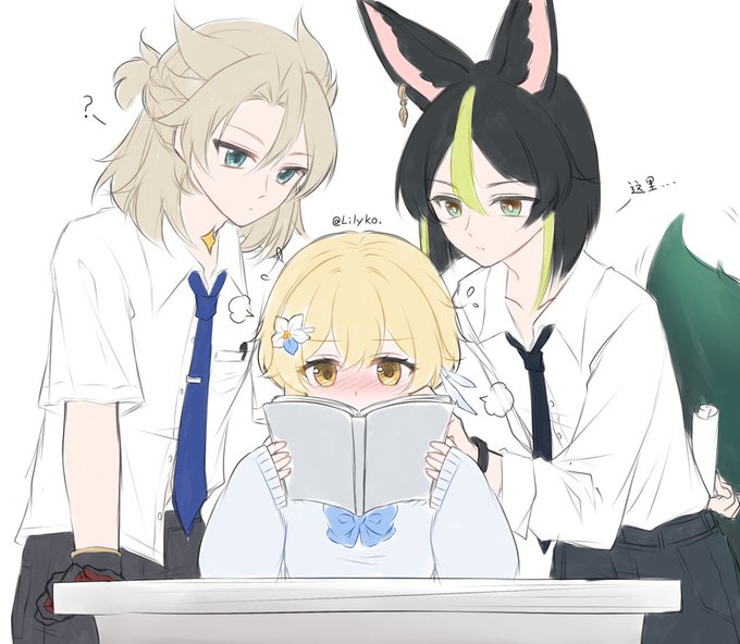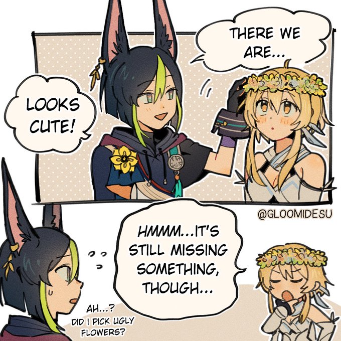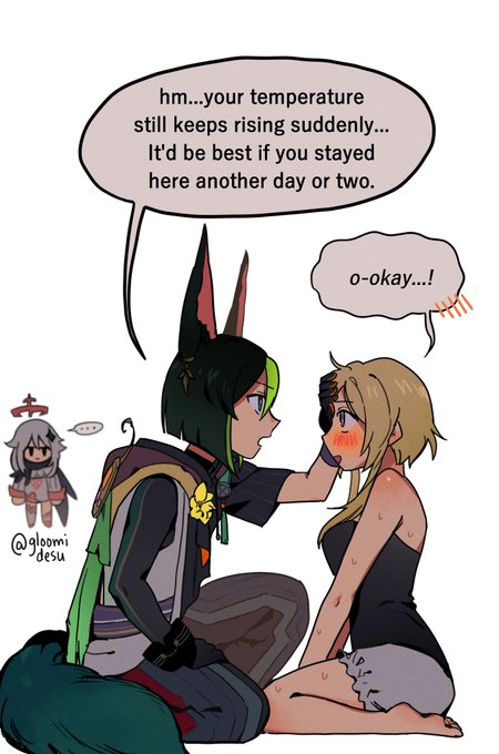 Meant to be. “Tighnari, take a look! The chibi looks like you but having furry ears and tail!” “And the one next to it looks like you too, Lumine.” #ティナリ生誕祭2022 #genshinimpact #tighlumi #Narilumi #Lumine #Tighnari