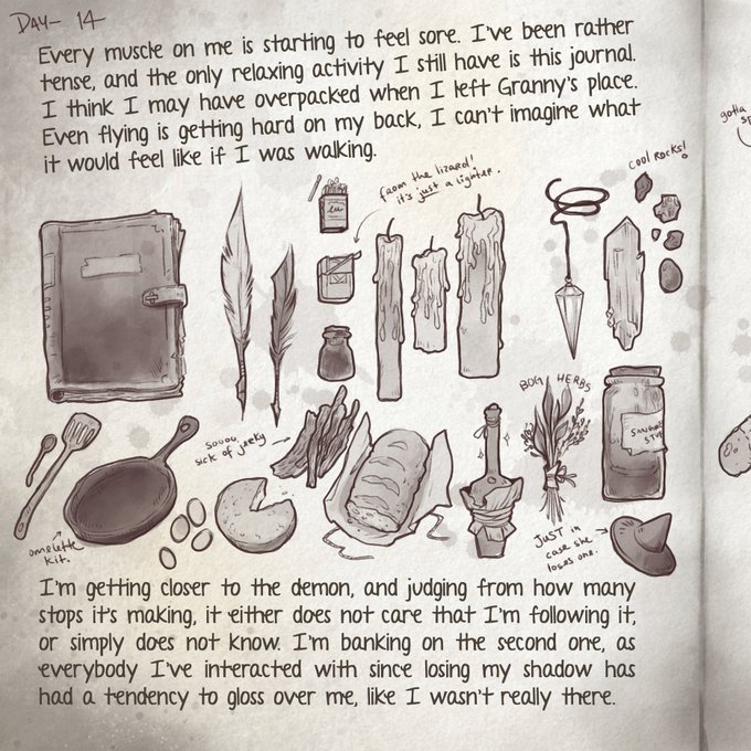 14 - Heavy M.B. doesn't know why their bag is so heavy... can you help them figure it out? #creatoberAsylum2021 #heavy #inventory #adventure #witchy #story #narrative #art #inktober