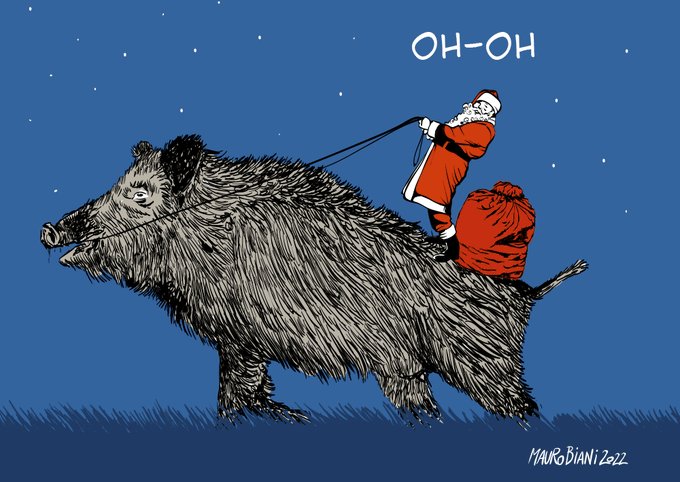 #Natale #BabboNatale #cinghiali C'era una volta un cinghiale occupabile. Così ho pensato di fare un regaluccio a chi lo vuole. Una card che volendo si può scaricare qui in alta risoluzione, e da stampare (ovviamente senza fini di lucro): maurobiani.it/wp-content/upl… Prosit.