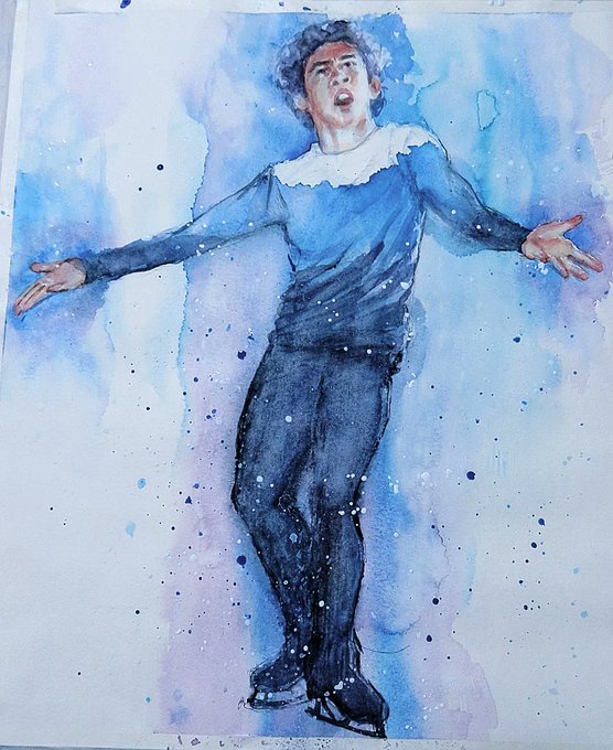 THE ICEでは 渾身のモーツァルトメドレーをありがとう😭❤❤❤ なんせカッコいい‼️ 別格のカッコよさを振りまくだけ振りまいて 風のように去ってしまった🍃🍃 それもまたカッコいい‼️😭 #nathanchen らしきもの #Nathancomeback🙏😭 #watercolor #fanart