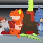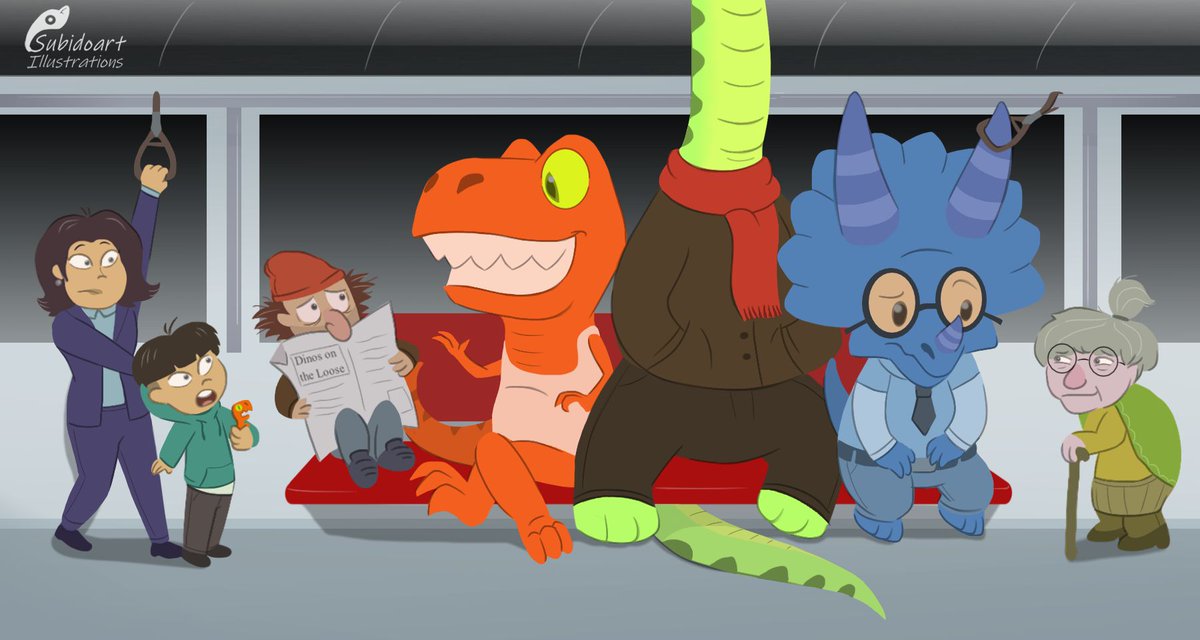 If dinosaurs were alive today. Also, dinosaur train. 🦕🚈 #NationalDrawaDinosaurDay #dinosaurs #originalcharacters #ocs #digitalart #artistsontwitter