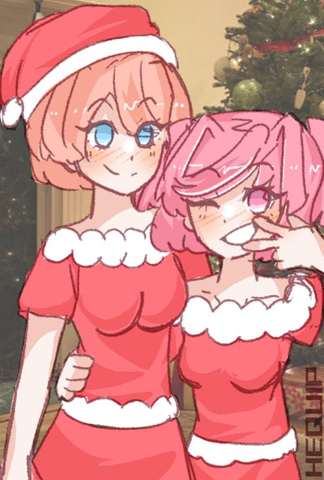 MERRY CHRISTMAS EVERYONE!! Have a BONUS doki Christmas drawing :] #DDLC #DokiDokiLiteratureClub #DDLCFanart #Sayori #Natsuki #NatsukiDDLC #SayoriDDLC