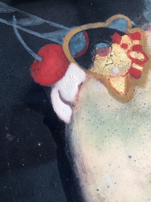 箔とは?て感じだけどすすんだ!! いい加減寝ないと明日の仕事しぬ #WorkinProgress #wip #日本画 #naturalpigments #art #artwork #japanesepainting #創作 #岩絵具 #金箔 #illustration #芸術の輪
