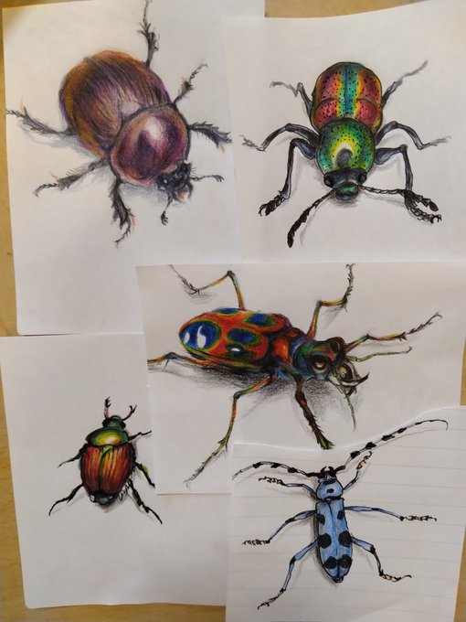 今日の落書き ハンミョウ(色鉛筆) #ハンミョウ #甲虫 #色鉛筆 #色鉛筆画 #落書き #落書き好きな人と繋がりたい #イラスト #イラスト練習中 #natureart #tigerbeetle #coloredpencil