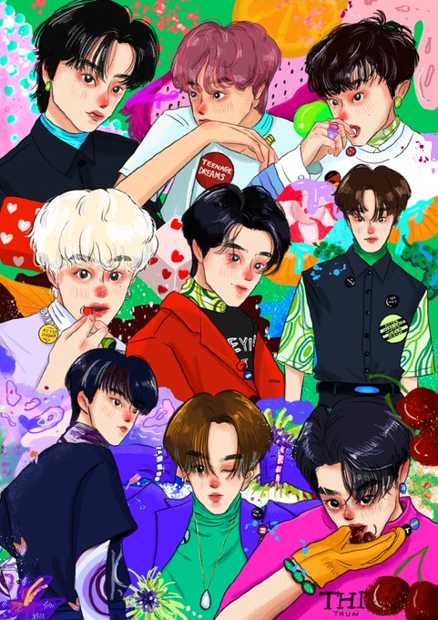 น้ำตาจะไหล 😂 ในที่สุดก็วาดจนเสร็จ ภาพเดียววาดเกือบอาทิตย์ เหตุเพราะฉีดวัคซีนมาแล้วปวดแขน 💪🏻😊 #NCT127 #NCT127_Sticker #nct127_roadtrip #NCTFanart