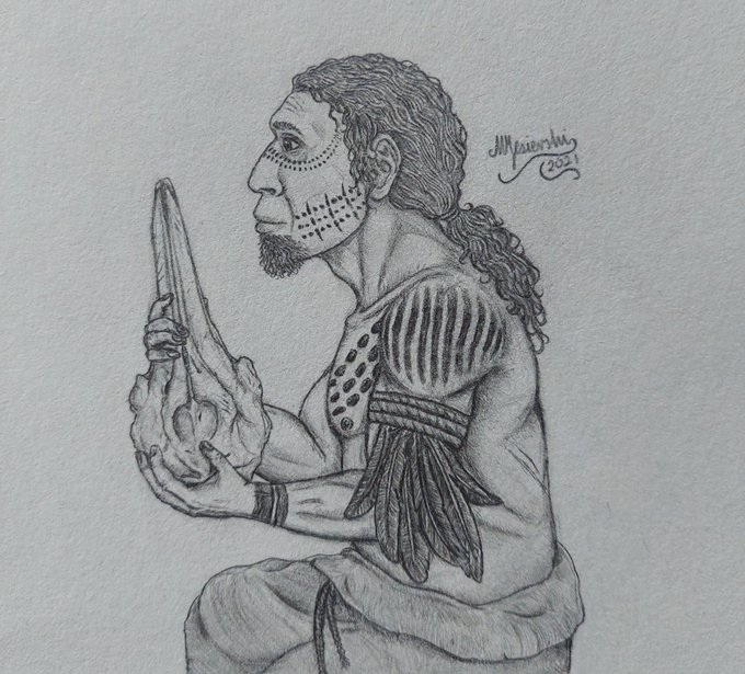 A woman of mixed modern human and Neanderthal ancestry in Pleistocene Europe. #neanderthal #mixedrace #biracial #paleoanthropology #paleoart #art #ArtistOnTwitter