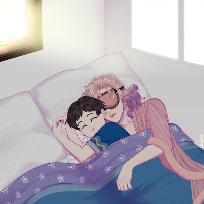 I drew the Vil and Neige's son ♥♥♥ He is 12 years old and is in Pomefiore's dorm, he is adopted so when he grew up he realized he didn't have Vil's features he decided to paint the ends of his hair blond ♥ 👑❄️ #twstプラス #twistedwonderland #vilschoenheit #neigeleblanche