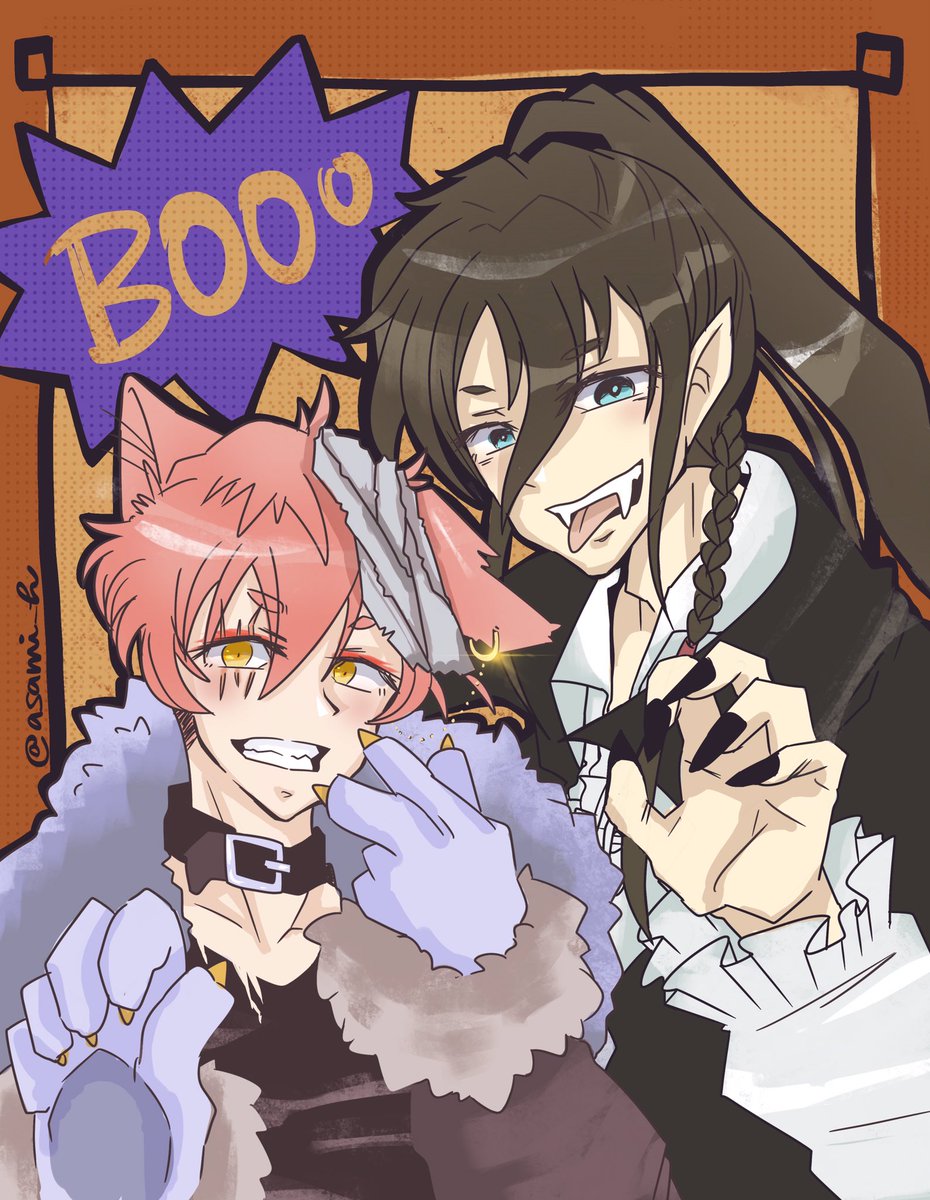Happy *late* Halloween!😆 どうしても仕上げたかったので、しれっと上げるw 兼さんと一緒だじょ★😆どうして兼さんかというのは明日またw #drawing #oc #originalcharacter #toukenranbuoc #イラスト #お絵描き #刀剣乱舞オリキャラ #nekomaru_DTIYS #創作男子 #procreate #デジタルイラスト