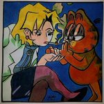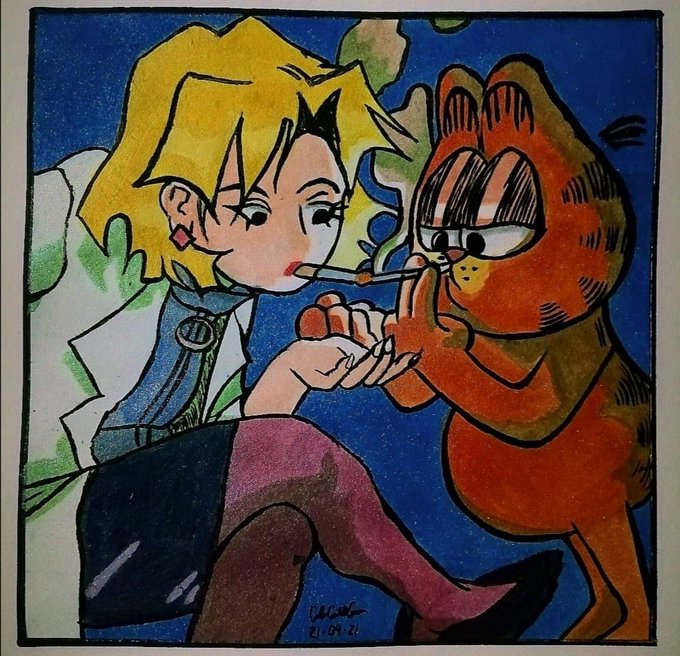 "SHARING IS CARING" @_aluwont #ritsuko #ritsukoakagi #garfield #cigarette #Evangelion #neonevangeliongenesis #fanart #cartoon #popart #wallpaper #drawing #art #artist #watercolor #glitter