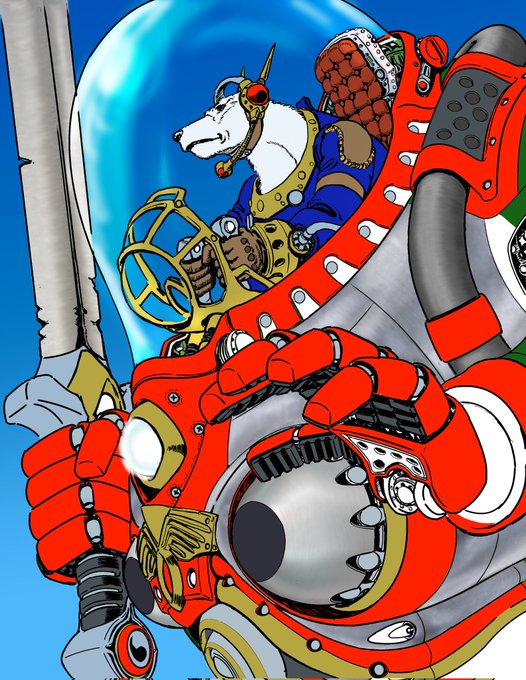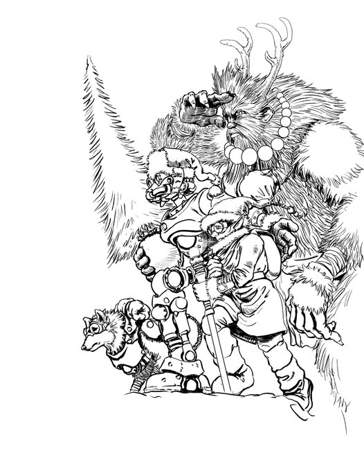 Progress amidst holiday stuff.😋#neonseedstudios #steampunk #Holidays #clipstudiopaintex #lineart #inktober #mecha #mech #robot #bot #puppy #wolf #yeti #elf #abominablesnowman #christmas #tree #holidaycards #mountains #snow #illustration #yule #art #artist #drawing #dailydrawing