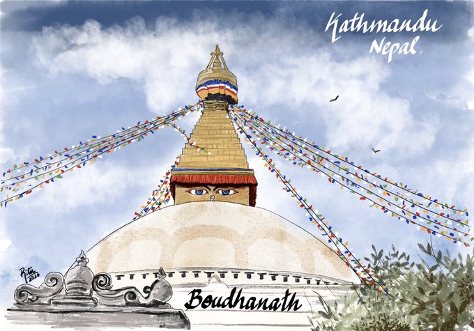 A UNESCO World Heritage site, Boudhanath stupa at Kathmandu is the largest Buddhist stupa in Nepal.🇳🇵 #nepal #inktober2020 #inktober #travelillustration