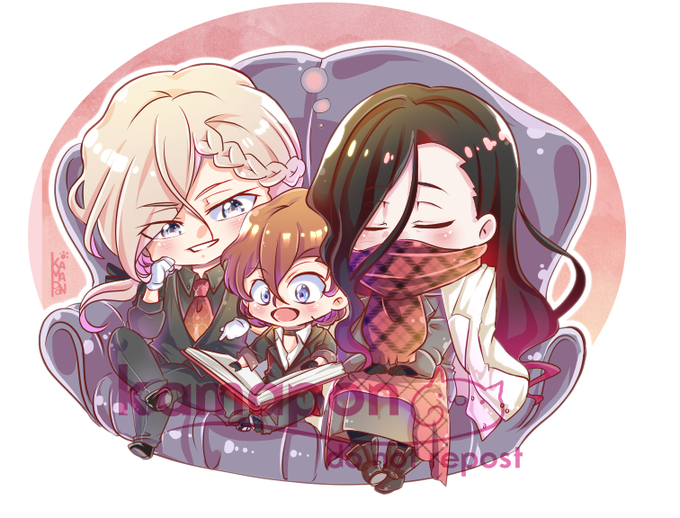 Day 7 for #skkfluffwk23 Aah it's been so fun joining this year again! I love these dorks and it's been a while since I last drew a finished piece of them ;__; Thank you, organizers! #BSD #neuh #BungouStrayDogs