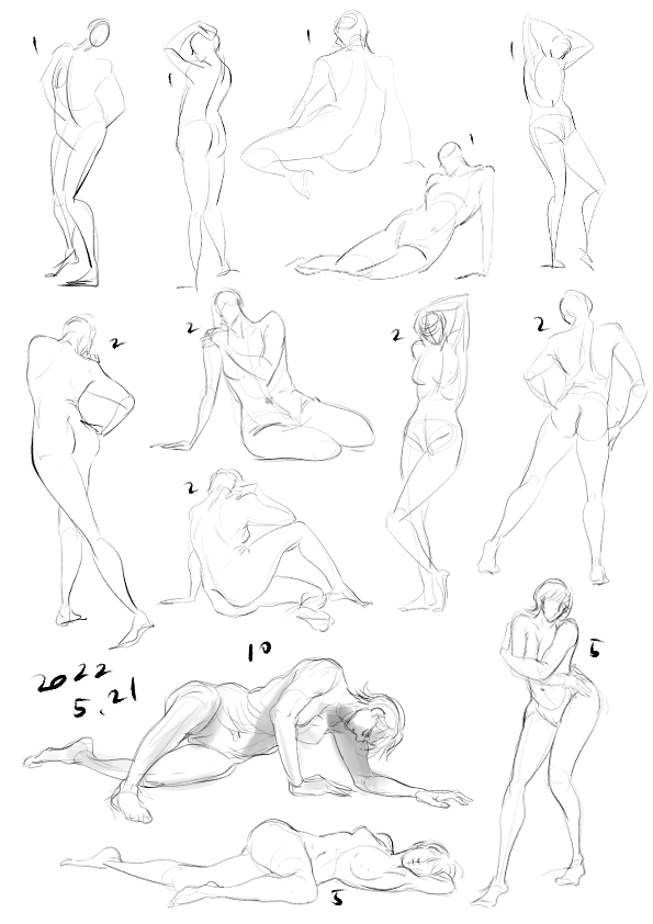 ちょっとやらないと、あっちゅうまにヘタクソになる… またちょっと練習しつつイラスト描きつつネームやりつつな感じで… おやすみなさーい😪🌙 #クロッキー #illustration #newmastersacademy