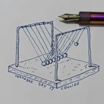 Inktober day 17: collide. . #inktober #inktober2021 #inktobercollide #day17 #collide #ink #blueink #robertoster #kidsontheblock #pen #fountainpen #namisun1 #newton #cradle #newtonscradle #drawing