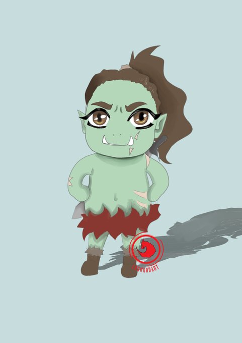 Hello world of Twitter! Here's a little Kitir, the orc drawing for ya! Gotta love the dumb boi #dndart #DnD #characterillustration #chibiart #newtotwitter #doodle