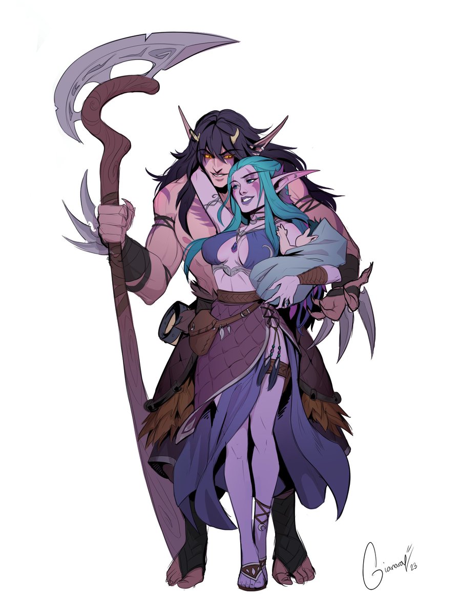 Like fall & spring ~ Fae and her beloved druid, Kel. sometime before the War of the Ancients, probably! #nightelf #worldofwarcraft #ArtistOnTwitter