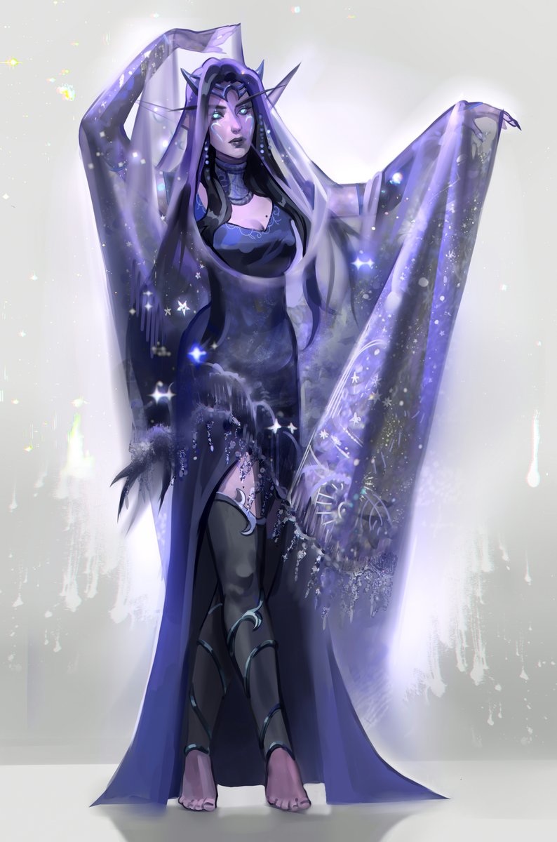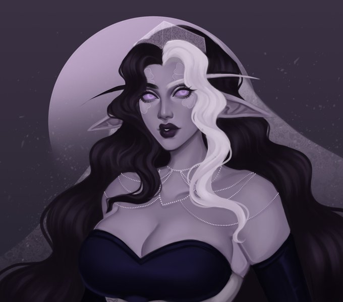 Would you like to gaze at the moon with her👉🏻👈🏻🌕 Isolde by the talented @AziaArt #warcraftart #OC #worldofwarcraft #nightelf