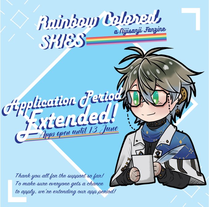 support by 🔁 🌈🕒𝕔𝕠𝕟𝕥𝕣𝕚𝕓𝕦𝕥𝕠𝕣 𝕒𝕡𝕡𝕤 𝕖𝕩𝕥𝕖𝕟𝕕𝕖𝕕🌈🕒 🌈🕒Rainbow Colored Skies, a Nijisanji Fanzine, is looking for artists and writers!🌈🕒 ☆彡★彡☆彡★彡 🌈🕒𝕒𝕡𝕡𝕝𝕪 𝕙𝕖𝕣𝕖🌈🕒 🔗forms.gle/ExM3Sf56sKqzDX…🔗 #NIJISANJI_EN #nijitwt #にじさんじ #NIJIArt