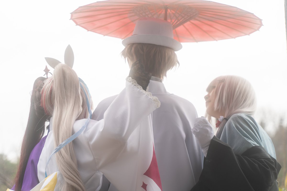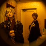 cos / 🌈🕒. すめし組(京まふ衣装) . 「わー雨だ!お、いい所に傘が!」 「しゃっちょー!入れてー!!」 「あなた達も持ってるでしょう!?…まあ、いいですけど。」 . #nikisphoto #明治村コス