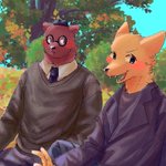 Friendly talk! ✨🍂 NITW style commission for @lunarspectrums [#nitw #nightinthewoods #fursona #furry #furryart #furryfandom #furryartist #furryartwork]
