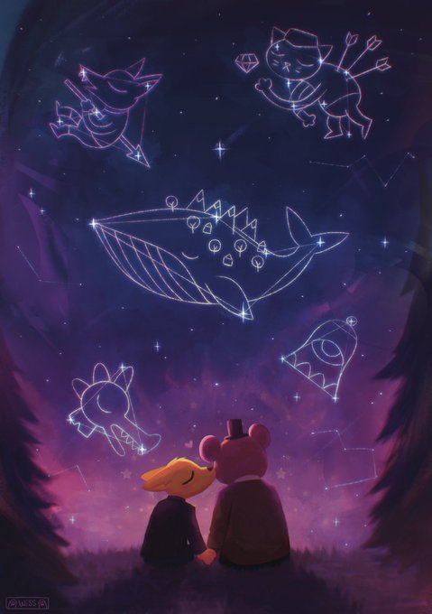 Super cool NITW style family photo commission for @WouldULikeSomeE 💙✨ [#nitw #nightinthewoods #fursona #furry #furryart #furryfandom #furryartist #furryartwork]