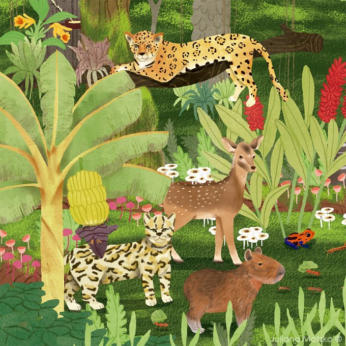 Another close up of an illustration that I made a few years ago for a non fiction book about Forests. #Amazon #Forest #Environment #Animals #Nature #nonfictionbook #nonfictionillustration #realisticillustration #childrenspublishing #illustration #illustrator #JulianaMotzko