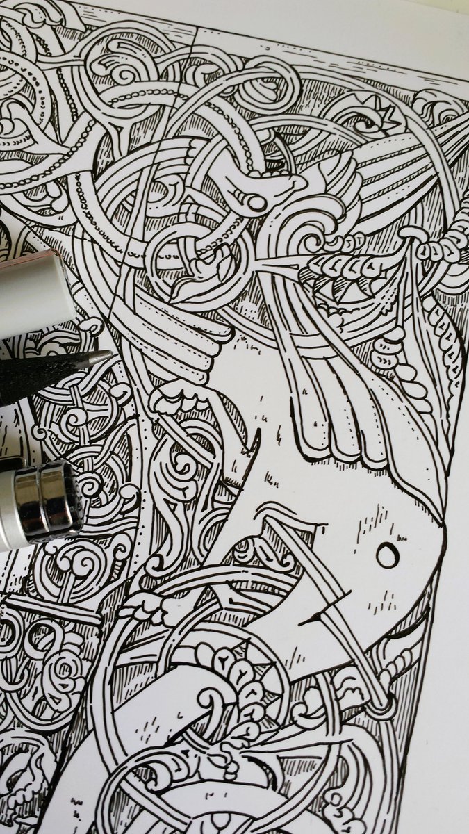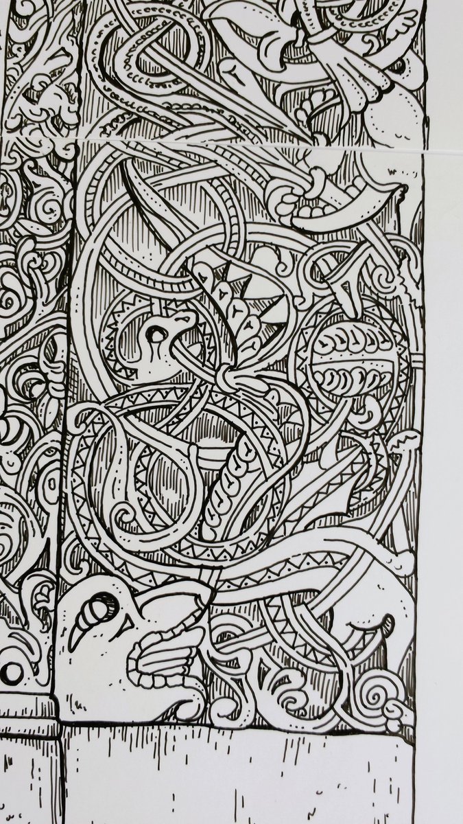 "On the upper part arches a large pair of opposing dragons with outstretched wings. The wings extend diagonally to the upper corners, while the tails curl down." The excitement is growing, wonder what's coming up?😉 Fig.ArchIllu #nordic #drawingoftheday #illustration #archaeology