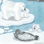 A close up of an illustration that I made for the chinese non fiction book about the Poles. #PolarBear #seal #hungrypolarbear #poles #northpole #childrenspublishing #nonfiction #polesbook #cute #nature #animals #illustration #kidlitart #kidlitartist #illustrator #JulianaMotzko