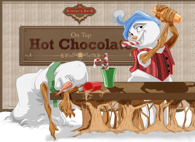 #snowmen are trouble in #Christmas & #Winter seasons here’s a couple getting loose on #hotchocolate and #candycane and the #Isaacthebartender can hook you up #art #drawing #illustration #MerryChristmas #NorthPole #holiday #snow #snowgoon #happyholidays #snowman #drunksnowman