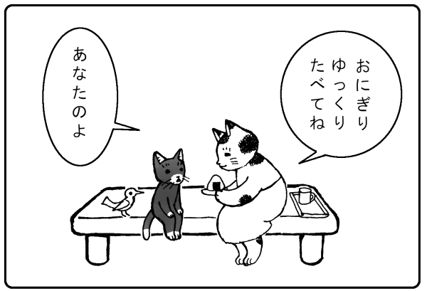 こんにちは。お昼ですね。 私たち午前中よくがんばりました。 美味しいお昼ごはんを食べて ひと息いれましょう。 午後も大丈夫です(*^^*) おにぎり猫のものがたり note.com/mikepunch/m/m4… #おにぎり猫のものがたり #漫画が読めるハッシュタグ #note漫画 #お昼