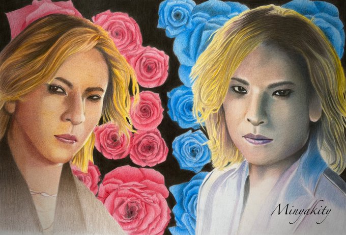 #色鉛筆 で #リアルゴールドXY と #YOSHIKI さんを描きました🥰✏️ #XJAPAN #colorpencildrawing #NothingIsImpossible ❤️🔥 #ロックの高揚感X #クラシックの集中力Y