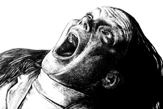 #notinktober 16 • Annie Graham • Toni Collette • Hereditary • dir. Ari Aster #ink #pentelbrushpen #pen #inktober2022 #art #artist #illustration #drawing #monochrome #monochromatic #ToniCollette #Hereditary #AriAster