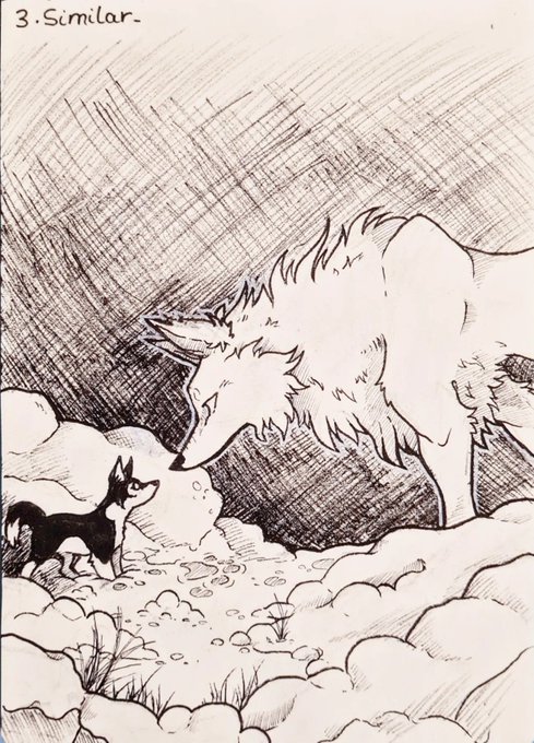 [INKTOBER - DAY 3 : SIMILAR.] Meeting with its ancestor... Hope you like it ! ❤ #inkart #inktober #inktoberchallenge #inktober2022 #wolf #husky #similar #dog #traditionalart #traditionaldrawing #inkart #notofficial #ownlist #owninktoberlist