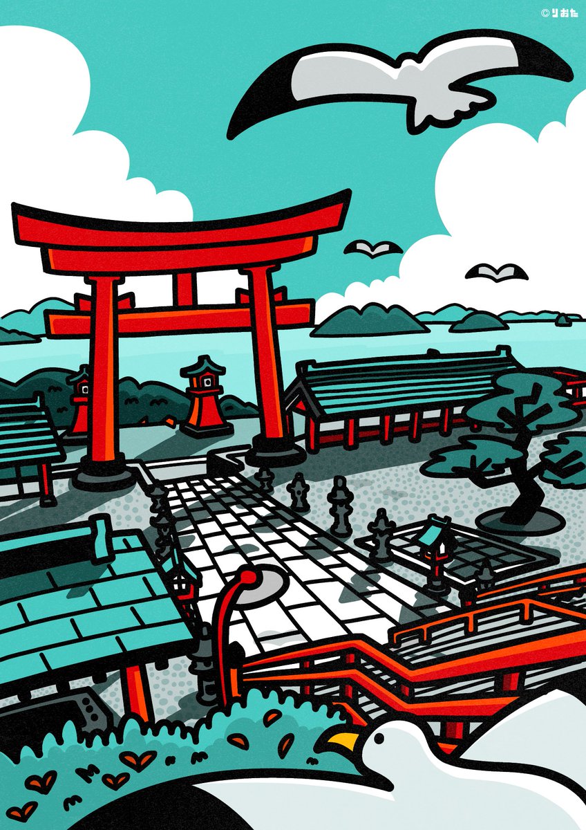 \福徳稲荷神社を描いてみた!/ 元の隅神社の影に隠れてしまうからか ココを知らない人が意外と多いのが 不思議でたまらない。 響灘を高台から一望できる 巨大鳥居と千本鳥居が圧巻な 山口県が誇る絶景過ぎて たまらない神社です⛩ #nowakiイラスト