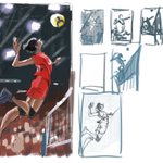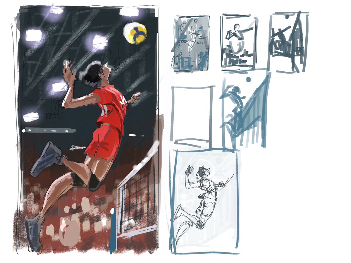 タケウマさんのイラスト講座も終盤、実際の資料集め、構想、ラフと作画を進めていく回でした。 実技が「背景と人」というテーマで、背景が暗くて登場人物のフチにライトがあたってる絵を描いてみたかったので、バレー選手を描いてみました。 #nowakiイラスト