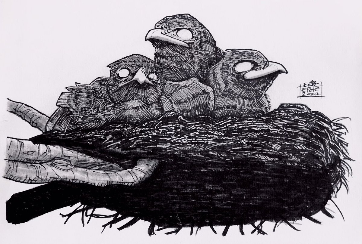 9 NEST 🪹 #NP BOB MARLEY "THREE LITTLE BIRDS" . . . . . . . . . . . . #inktober2022 #draw #birds #sketch #illustration