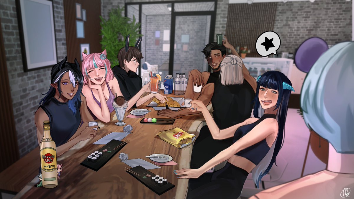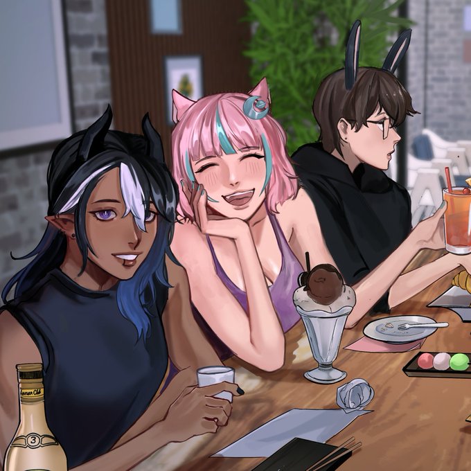 "Heartu~!" It's a sleepover party! I wanted to do some quick cozy sketching of the moongorls because I needed a break. From left to right: Luna (Mondzecke), Nuri (nurilicous) and me! #Fanartem1s #mondzeART #nuriART #digitalart