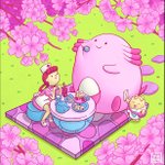 #inktober2022 day 13: kind! nurse joy is the epitome of kindness, so here she is mending chansey's hat <3 - #inktober #inktoberday13 #pokemon #nursejoy #chansey